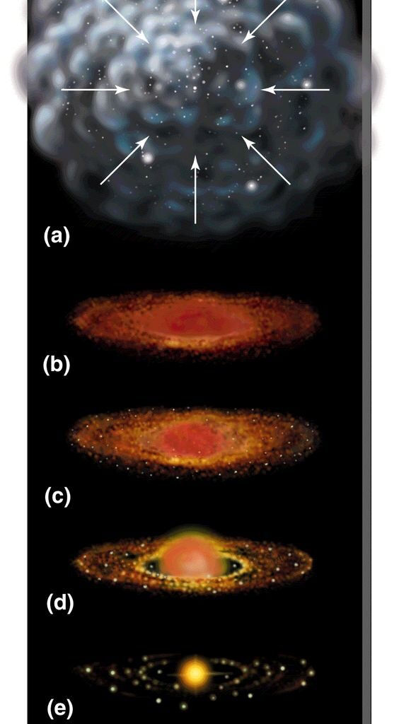Όπως και να έχει θα ήθελα πολύ μια βοήθεια στον υπολογισμό του πόσο χρόνου θα έπαιρνε για το σχηματισμό πλανητών, εφόσον η θεωρία λέει ότι οι δίσκοι αερίων στροβιλίζονταν μέχρι που κάνουν στερεους πυρήνες με τέτοια μάζα ώστε να ελξουν βαρυτικά και άλλο υλικό ώστε τελικά να γίνουν πλανήτες. Και οκ, αυτοί οι αέριοι δίσκοι στροβιλίζονται γύρω από ένα άστρο, γιατί δεν έλκει όλη την ύλη το αστέρι; Πώς δημιουργείται το αστέρι, εφόσον δεν υπάρχει κάτι άλλο να δημιουργήσει αυτή την περιδίνηση στο διάστημα ώστε να γίνει κάτι τόσο τεράστιο και μαζικό, τελικά, όπως ένα άστρο που θα είναι υπεύθυνο για τη δημιουργία ενός αστρικού συστήματος;